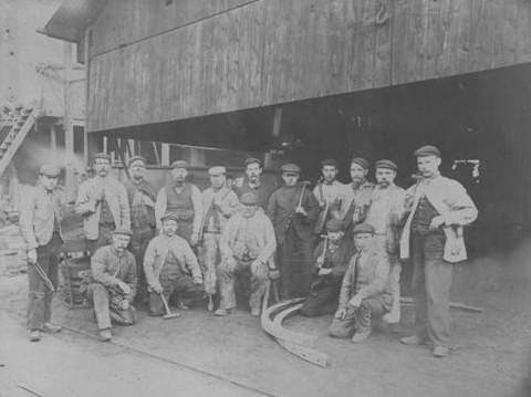 ![]() Boiler Makers outside the boiler sheds at Black Bull. Edwin is on the back row 2nd from right |